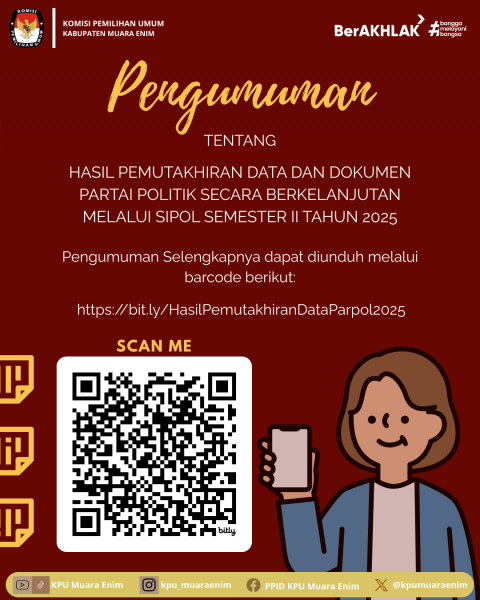 Pengumuman Pasil pemuktakhiran Data Partai Politik Melalui Sipol Semester II Tahun 2025.