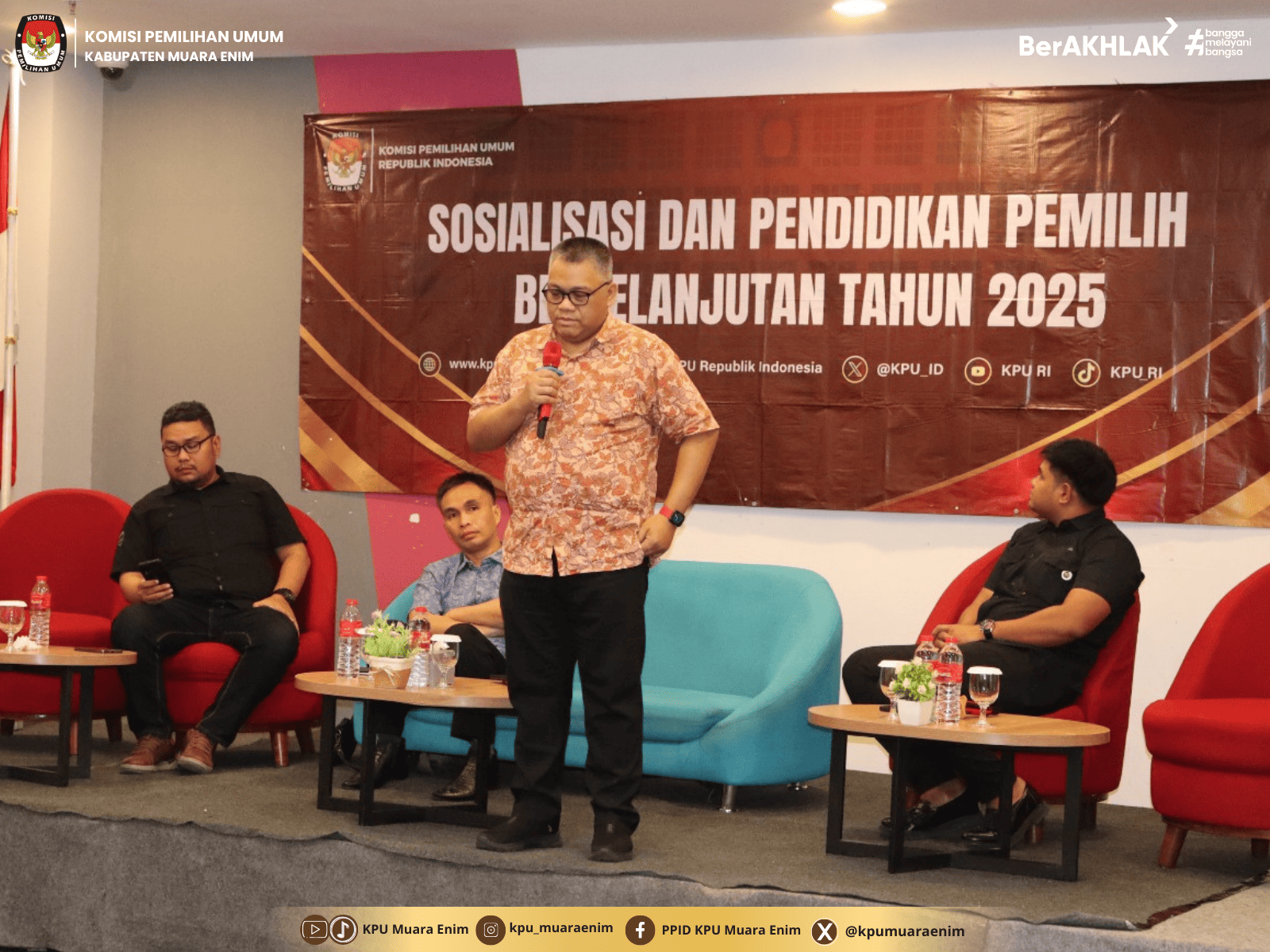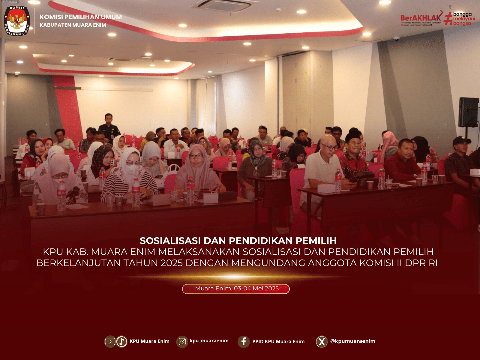 manPemilih, KPU Kabupaten Muara Enim Menjadi Fasilitator dalam Melaksanakan Sosialisasi dan Pendidikan Pemilih Berkelanjutan Tahun 2025 dengan dihadiri Anggota Komisi II DPR RI, Sabtu-Minggu 03-04 Mei 2025 bertempat di Fave Hotel Prabumulih